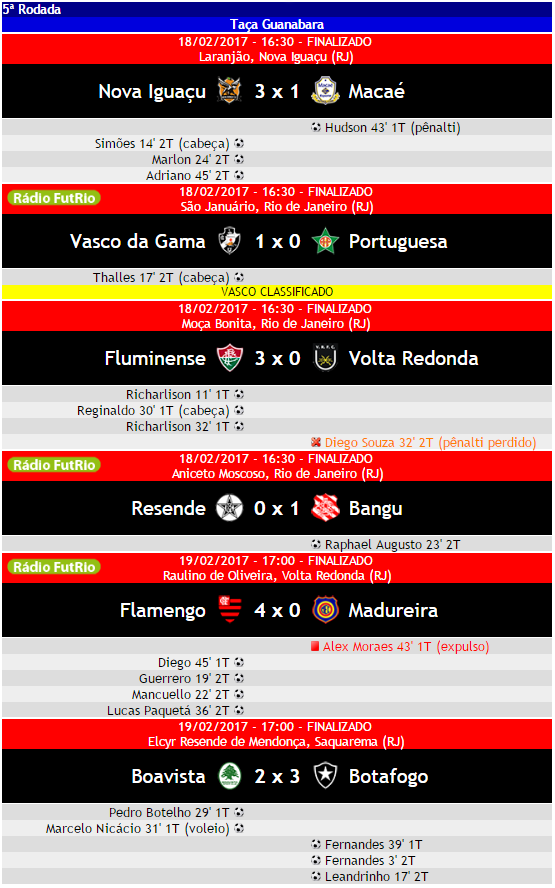Fonte: NETVASCO (texto), GloboEsporte.com (classificação, próximos jogos), FutRio (resultados, autores dos gols, classificação geral)