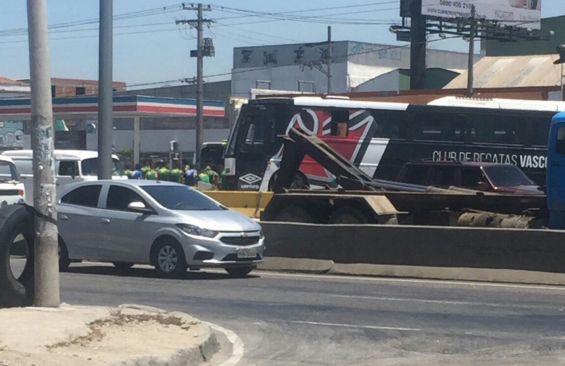 Um ônibus do Vasco com jogadores e comissão técnica do sub-15 sofreu acidente há pouco na Avenida Brasil (Foto: @ismael_fpjr) #lanceVAS