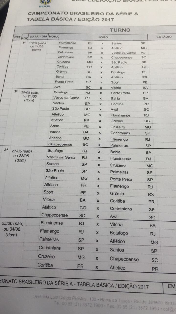 Fabio Azevedo @_fabioazevedo Primeiras rodadas da Série A do Campeonato Brasileiro de 2017! pic.twitter.com/lBJd4bOuYO