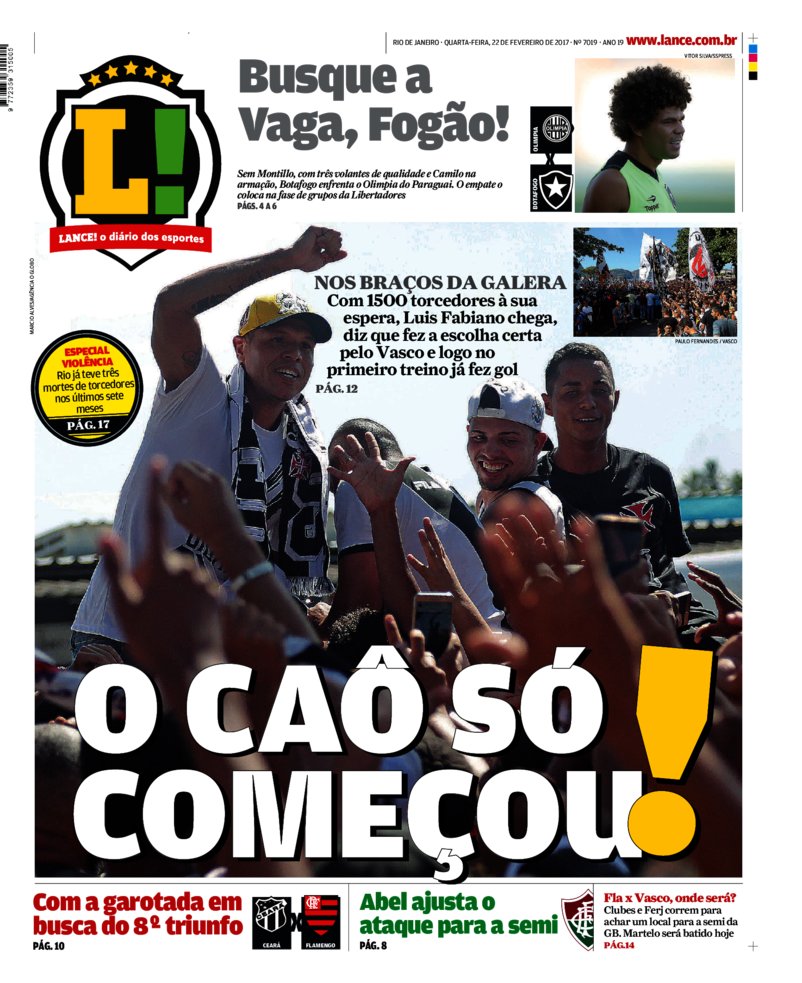 Veja como a imprensa carioca destacou a chegada de Luis Fabiano ao Vasco