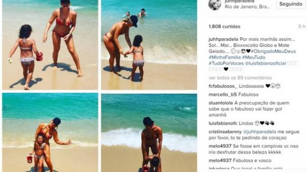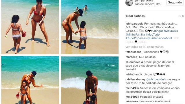 O atacante Luis Fabiano ainda não completou uma semana de Vasco, mas a sua mulher, Juliana Paradela, já ganhou o status de nova musa vascaína nas redes sociais. Já adaptada ao Rio de Janeiro, ela aproveitou a praia com a filha nesta sexta-feira e deu um show de boa forma, como pode-se ver nas fotos acima.