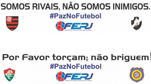 A Federação de Futebol do Estado do Rio de Janeiro (Ferj) fará ações contra a violência neste sábado, no Raulino de Oliveira, na semifinal da Taça Guanabara entre Flamengo e Vasco. Apesar de a parcial de ingressos vendidos na noite de sexta-feira ter sido inferior a quatro mil, a entidade preparou 10 mil panfletos pedindo paz para serem distribuídos no estádio. As crianças que entrarão com as equipes também deverão trocar as bandeiras no gramado, que receberá uma faixa com os dizeres: "Somos rivais, não somos inimigos". Em Los Larios, onde jogam Fluminense e Madureira, a única ação será uma faixa com a inscrição "por favor torçam, não briguem".