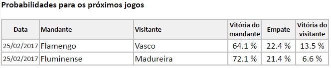 Já o site Chance de Gol, especializado em previsões estatísticas relacionadas a futebol, aponta 64,1% de probabilidade de vitória do Flamengo, 22,4% de empate e 13,5% de vitória do Vasco.