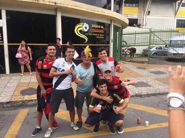 Torcedores brincam juntos do lado de fora e avisam: "hoje é o clássico da paz" #lanceCLASSICO