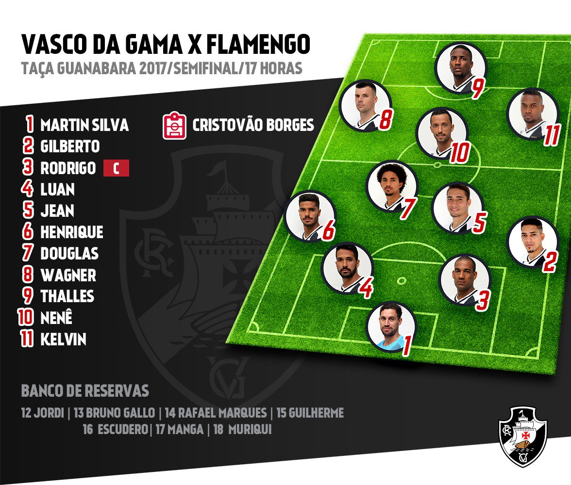 Vasco da Gama @vascodagama Escalação oficial do Vasco para o clássico contra o Flamengo. #FLAxVAS