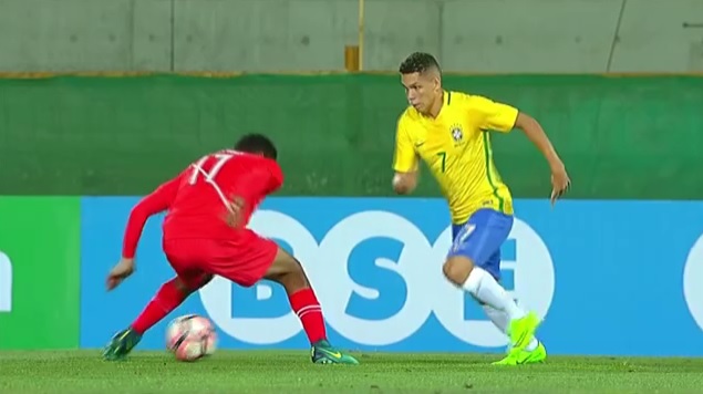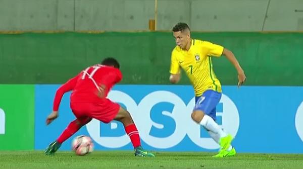 E a garotada do Brasil mostrou muita habilidade. Na primeira etapa, não foram apenas três gols. Também foram três "canetas" aplicadas nos adversários peruanos. O atacante Paulinho, revelação do Vasco foi o responsável por duas delas. A primeira no meia Aoki e depois no lateral Ormeño. Para fechar, mais uma bola entra as pernas. O autor foi Vinícius Júnior, e a "vítima" o zagueiro Huarote.