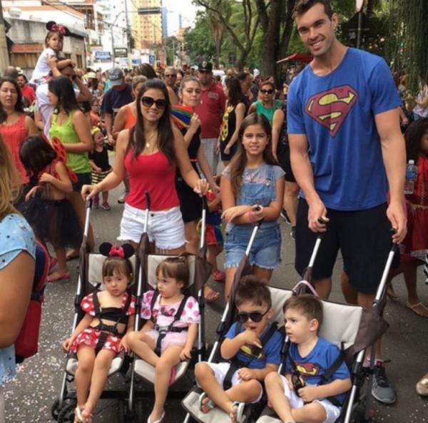 Basquete: De camisa do Super-Homem, Murilo curte o Carnaval com a família