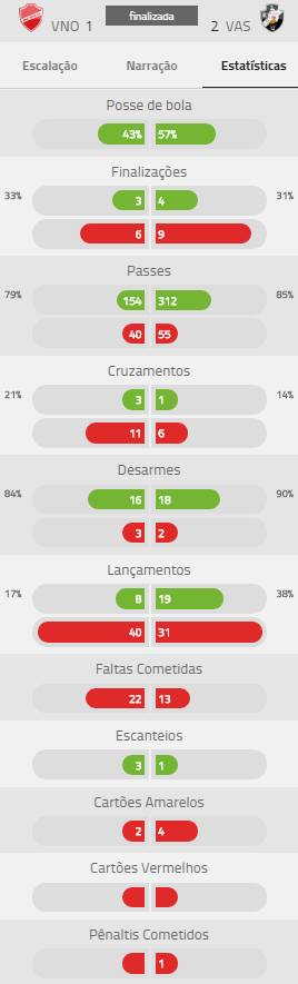 Confira as estatísticas do 1º tempo de Vila Nova x Vasco