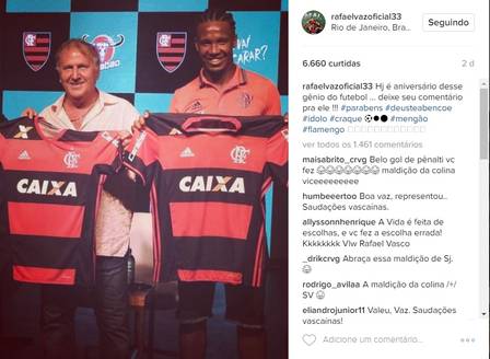 A última postagem do defensor em seu perfil no Instagram, uma foto com Zico, recebeu muitos comentários de torcedores, principalmente do Vasco para “parabenizar” o erro do atleta.
