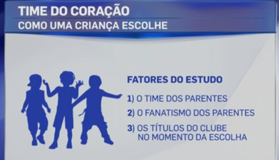 O que você levou em consideração na hora de escolher o time do coração? Com o mesmo questionamento, o professor Rodolfo Ribeiro resolveu estudar o tema em sua tese de doutorado na USP (Universidade de São Paulo) e concluiu que três fatores são decisivos para as crianças na hora de definir para quem torcer no futebol: o time dos familiares, o fanatismo dos familiares e os títulos do clube no momento da escolha (assista ao vídeo).