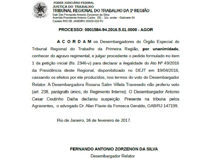 Foi publicado na segunda-feira o acórdão do TRT-RJ que tira o Vasco do Ato Trabalhista. Departamento jurídico vai recorrer. #gevas