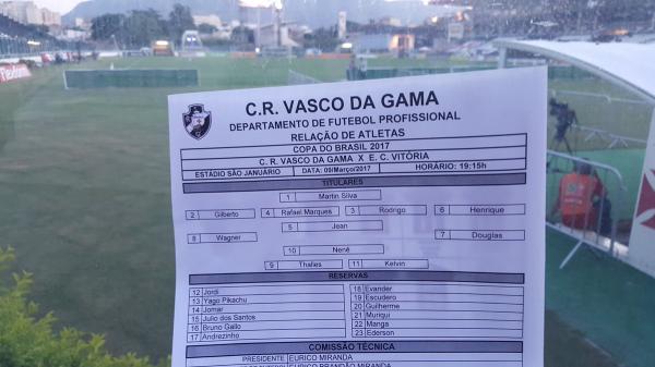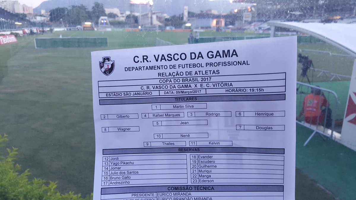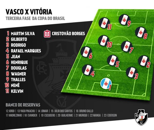 Escalação oficial do Vasco para o jogo contra o Vitória pela @CopadoBrasil. #VASxVIT