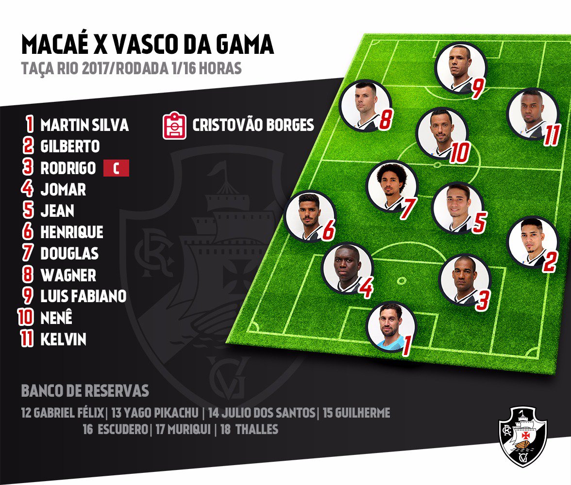 Vasco da Gama @vascodagama Escalação oficial do Vasco para a partida contra o Macaé. #MACxVAS