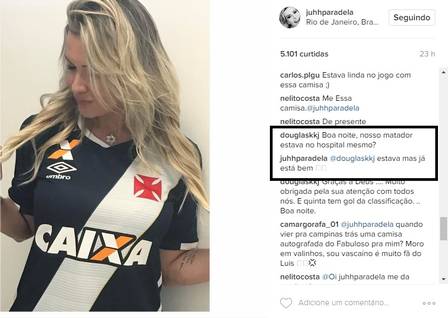 Um vascaíno questionou a mulher do Fabuloso, Juliana Paradela, sobre o estado de saúde do jogador, em uma postagem feita por ela em uma rede social. A esposa do atleta tranquilizou os fãs: