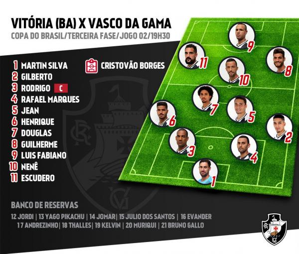 Vasco enfrenta o Vitória nesta 5ª-feira às 19h30 em Salvador com Fox Sports