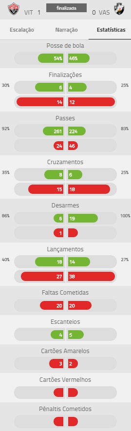 Confira estatísticas de Vitória 1 x 0 Vasco