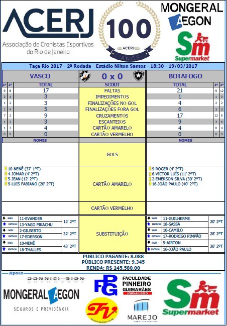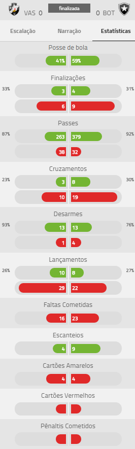 Confira estatísticas de Vasco 0 x 0 Botafogo