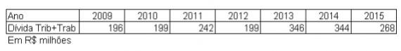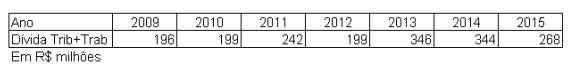 Para evitar confusões de conceitos, fomos analisar os dados de Dívidas Tributárias e Trabalhistas de 2009 a 2015.