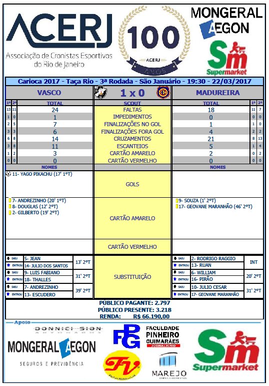 Confira estatísticas de Vasco 1 x 0 Madureira