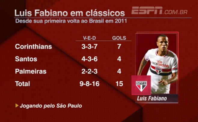 Veja o retrospecto de Luis Fabiano em clássicos desde 2011