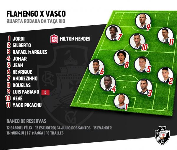 Vasco - Jordi, Gilberto, Jomar, Rafael Marques, Henrique; Jean, Douglas, Pikachu, Nenê, Andrezinho; Luis Fabiano.