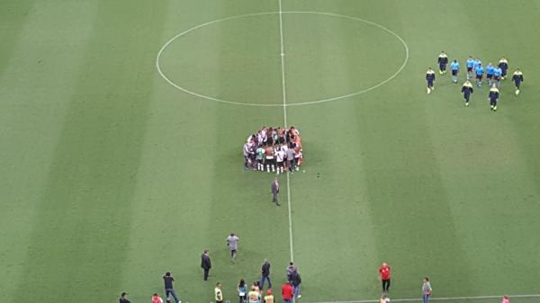 Felipe Schmidt @schmidt_felipe Milton reúne jogadores para corrente no gramado. #trmane #gevas