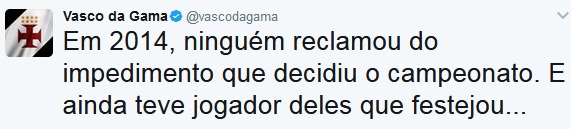 Fonte: Twitter oficial do Vasco Nota da NETVASCO: Veja abaixo a postagem do Flamengo que motivou a resposta do Vasco.
