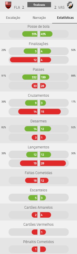 Confira estatísticas de Urubu 2 x 2 Vasco