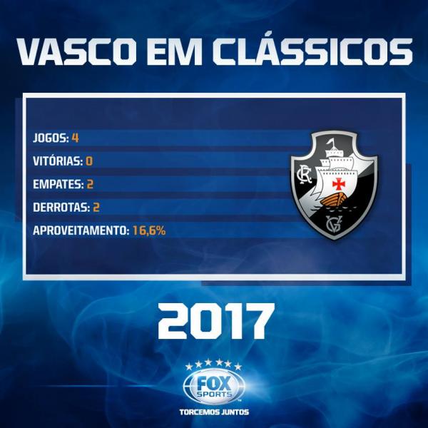 Em 2017, Vasco disputou 4 clássicos e ainda não venceu: foram 2 empates e 2 derrotas