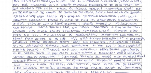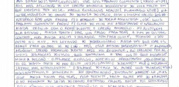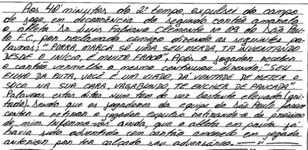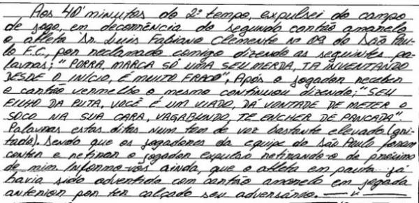 Na súmula da partida, Elmo citou as supostas ofensas: "Seu filho da p.., você é um v... Dá vontade de te meter soco na cara, vagabundo, te encher de pancada".