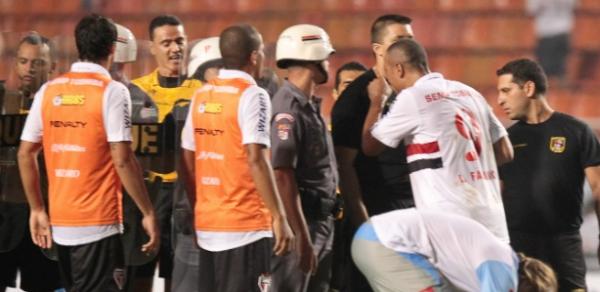 No clássico deste domingo (26) contra o Flamengo em Brasília, Luís Fabiano não gostou de ter recebido o cartão amarelo e peitou o árbitro Luis Antônio Silva Santos, o Índio. A autoridade também divulgou na súmula xingamentos do atacante.