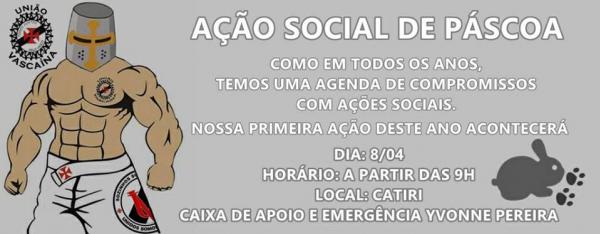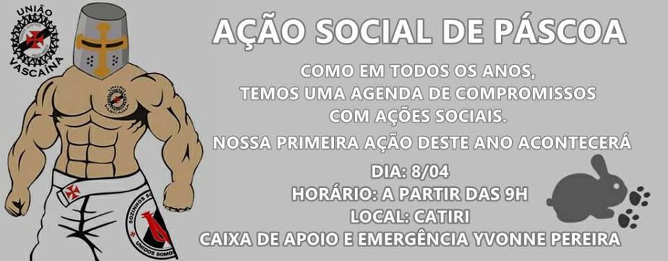 A UNIÃO VASCAÍNA CONTA COM SUA AJUDA, ESTAREMOS RECEBENDO BRINQUEDOS, ALIMENTOS NÃO PERECÍVEIS, ROUPAS OU DOCES NO JOGO DE QUINTA FEIRA EM SÃO JANUÁRIO, PROCURE QUALQUER MEMBRO DA UNIÃO VASCAÍNA OU ENTRE EM CONTATO NAS NOSSAS PÁGINAS NO FACEBOOK E INSTAGRAM.