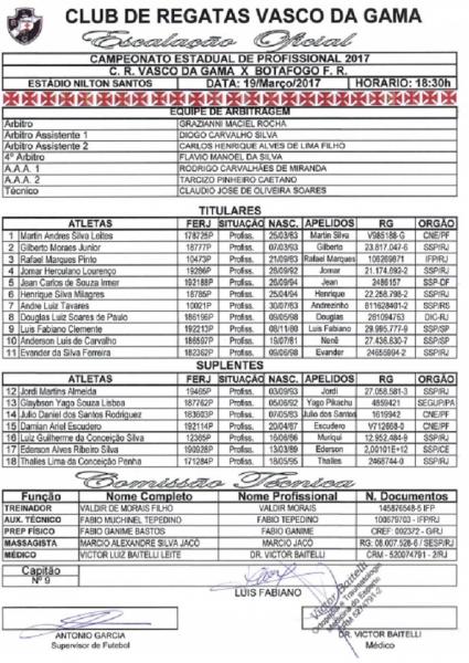 Na relação entregue à arbitragem contra o Botafogo, Jomar e Rafael Marques aparecem com os números trocados. #gevas