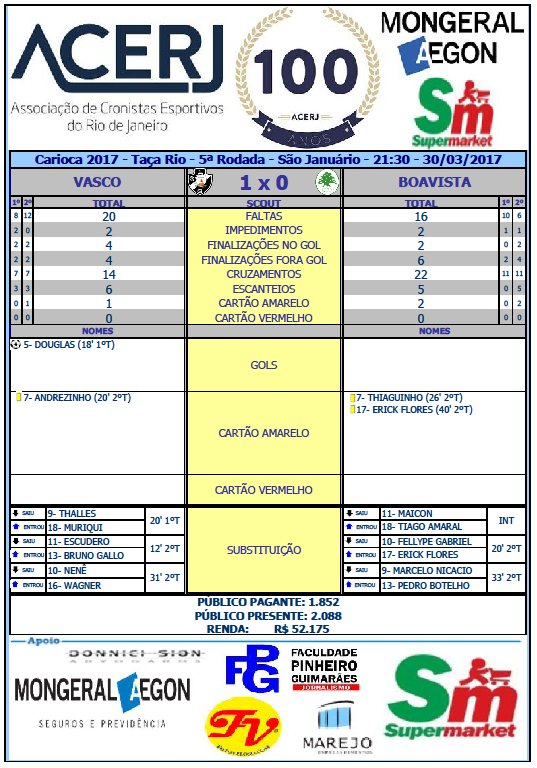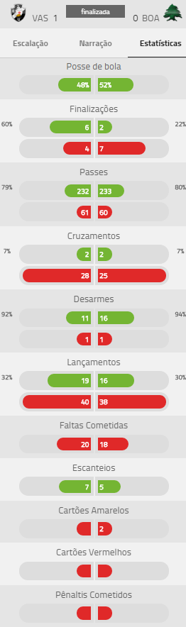 Confira estatísticas de Vasco 1 x 0 Boavista