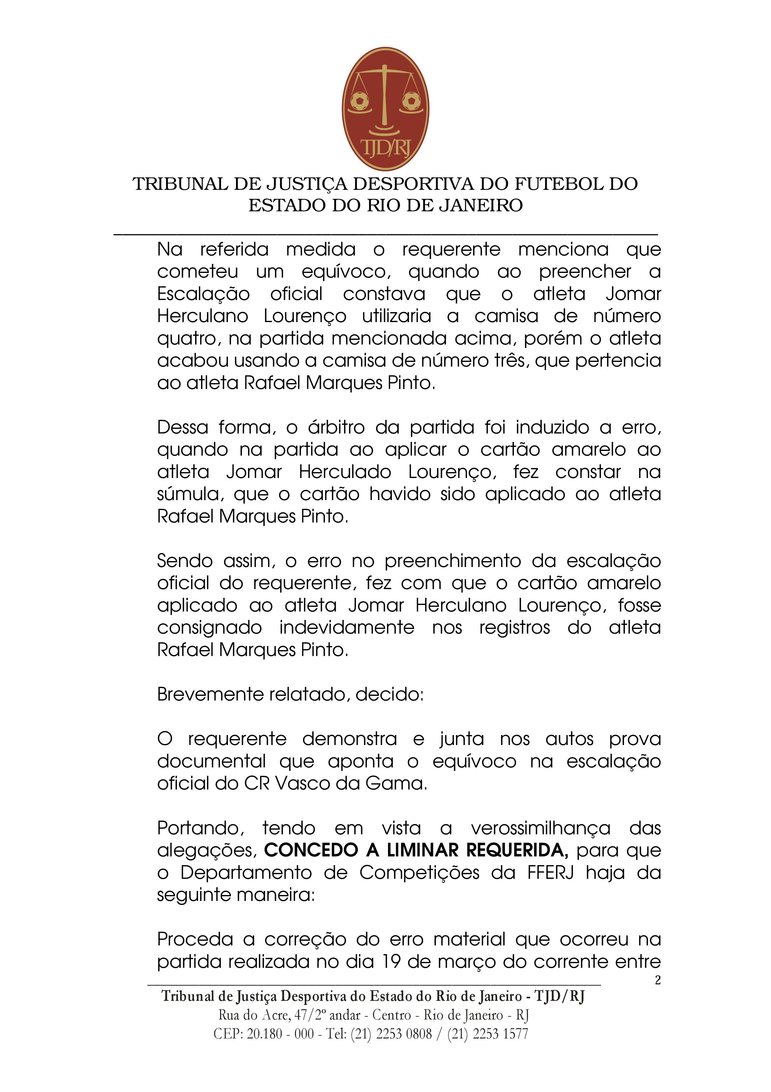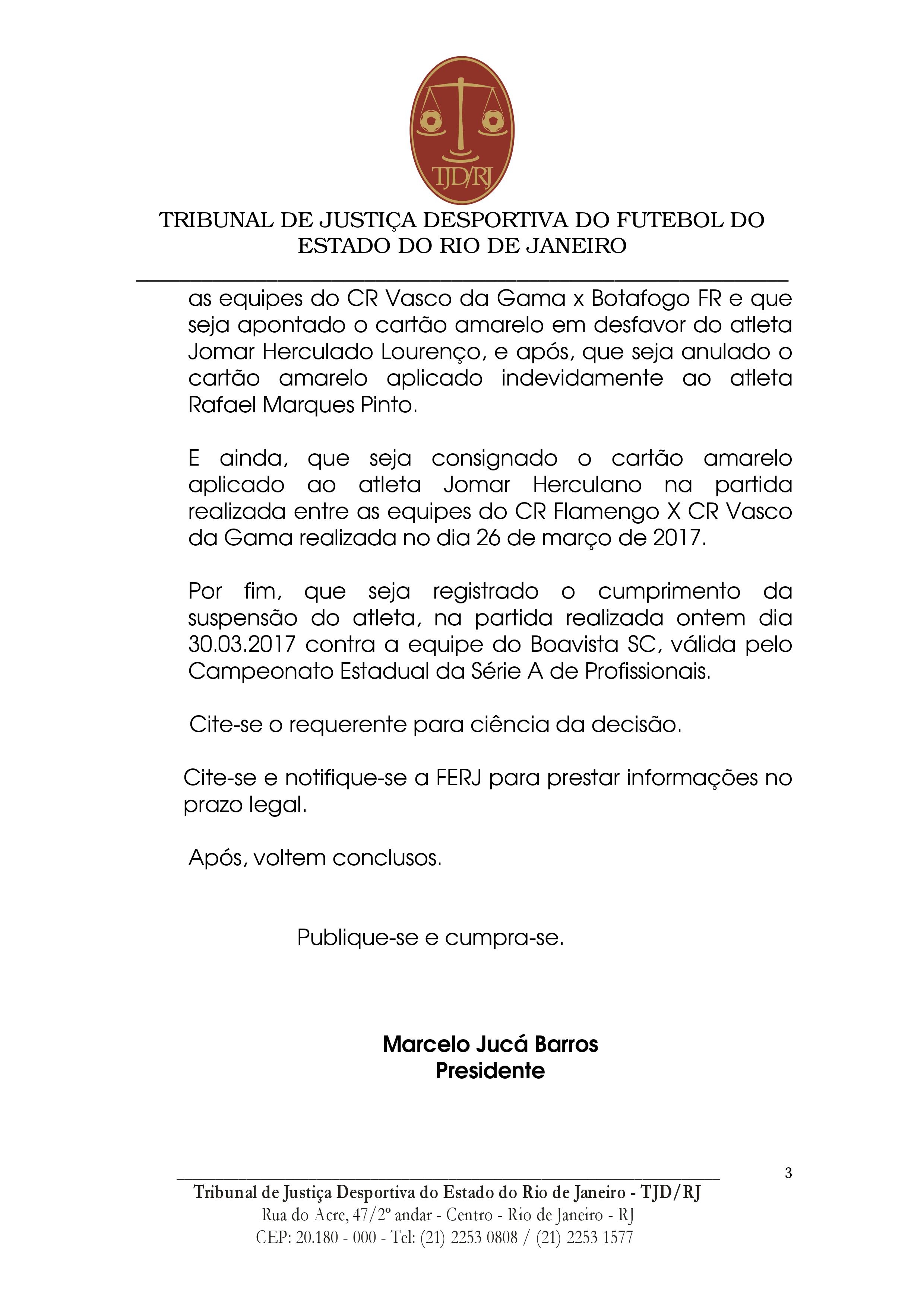 O Tribunal de Justiça Desportiva do Futebol do Estado do Rio de Janeiro decidiu a situação do zagueiro Jomar. Confira abaixo: