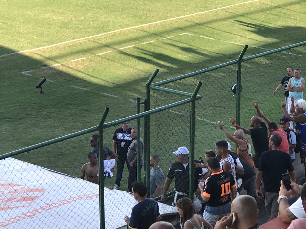 Aline Nastari @alinenastari Fim de primeiro tempo. Rodrigo foi até a arquibancada, pegou um cartaz e entregou sua camisa.