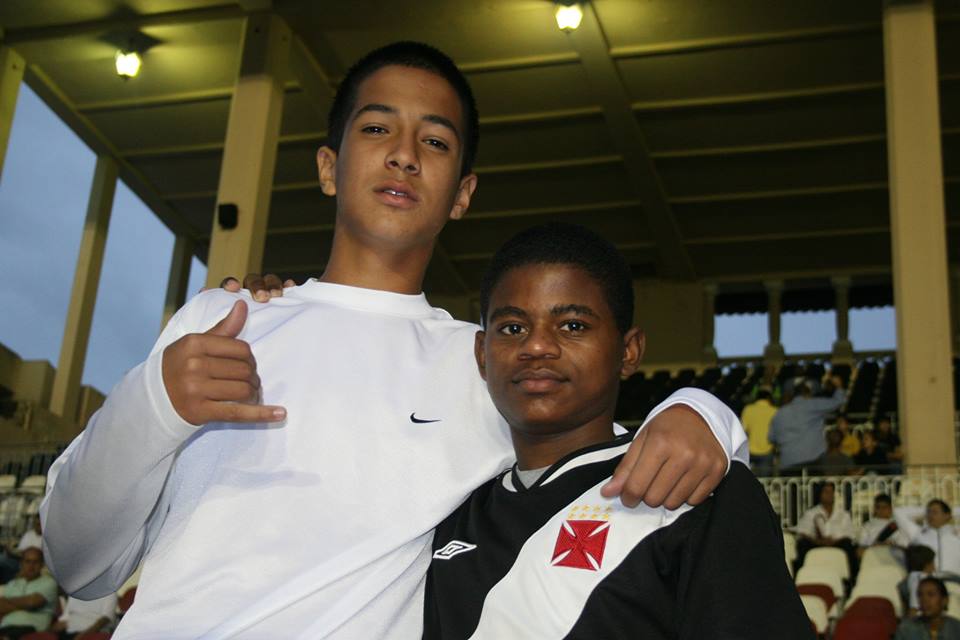 Fred Huber @FredHuber Olha o @garcialuan93 aí no dia do gol mil do Romário, ao lado do lateral Adriel Pajé. Foto do Paulo Fernandes/Vasco. #gevas