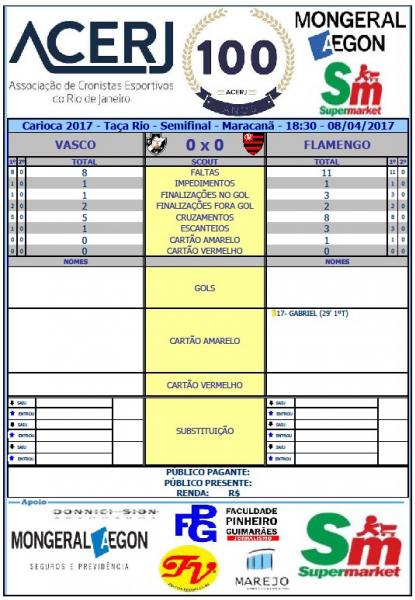 Acerj @acerjrio Scout do 1º tempo de Vasco e Flamengo pela Semifinal da Taça Guanabara 2017