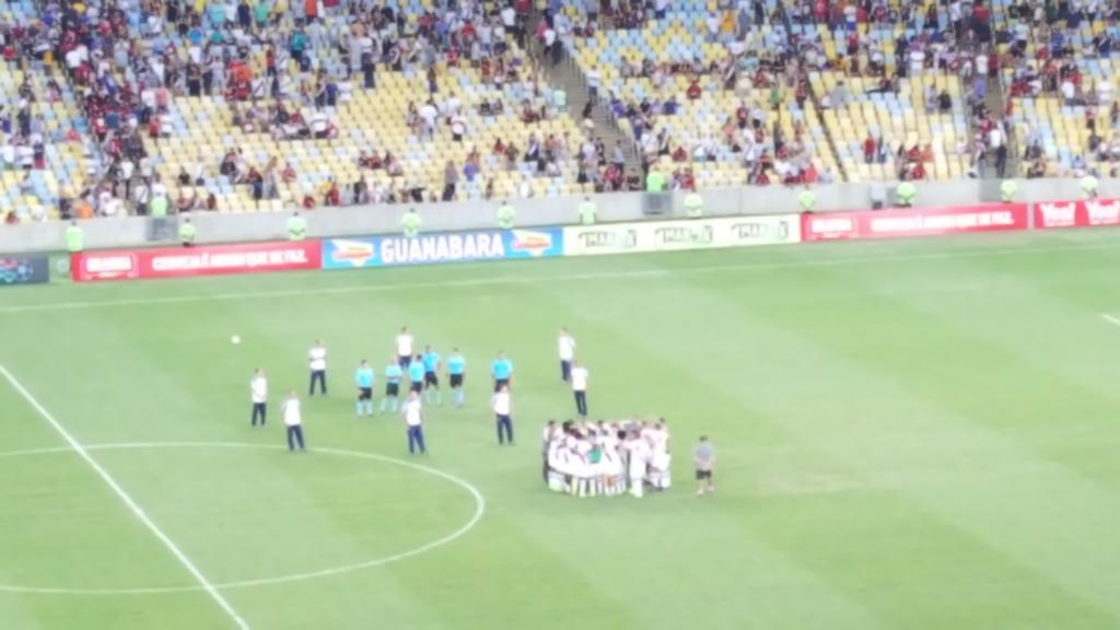 Felipe Schmidt @schmidt_felipe Jogadores do Vasco se reúnem no campo. Torcida provoca Fla: "Eliminado!". #trmaraca