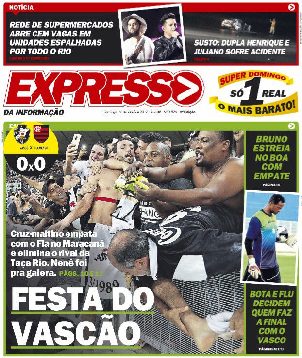Veja como a imprensa carioca destacou a classificação do Vasco para a final da Taça Rio