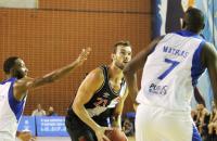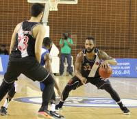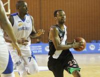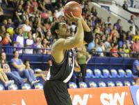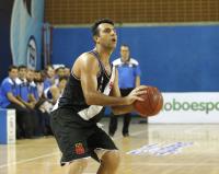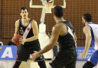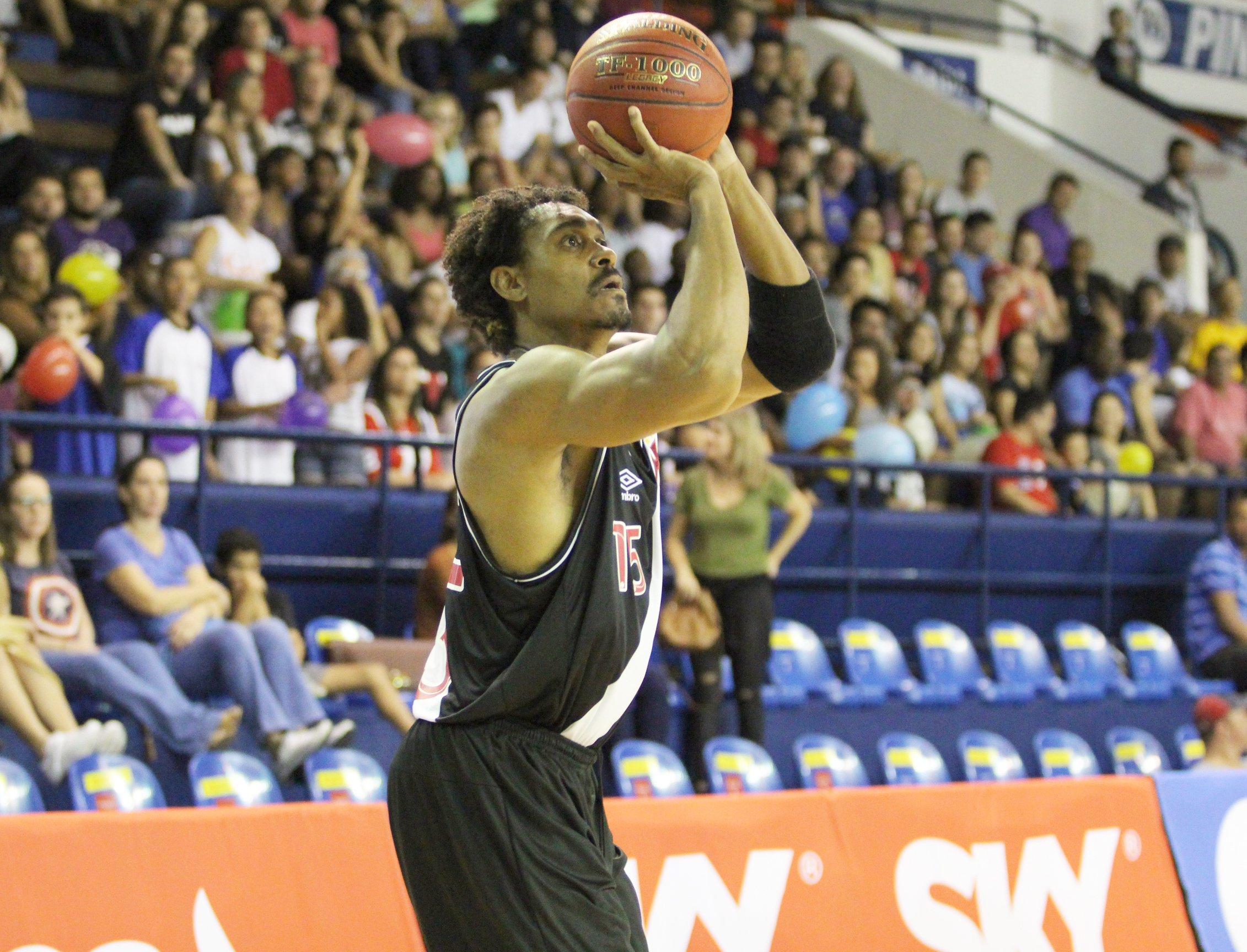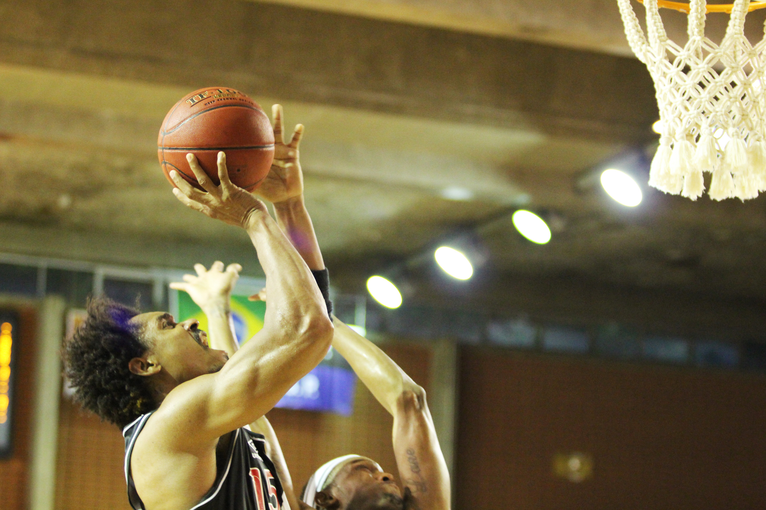 ![]() Márcio tenta enterrada e é marcado de perto por adversário |