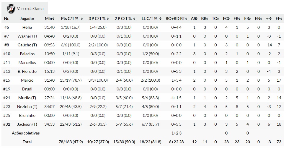 Aos poucos, o Vasco começou a evoluir. No segundo período, os vascaínos acertaram a marcação e conseguiram fazer um jogo mais equilibrado com o Pinheiros. Murilo, com cinco pontos, e David Jackson, com seis, foram os destaques cruzmaltinos. O time de São Januário foi para o intervalo perdendo por 44 a 36.