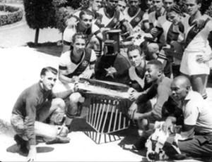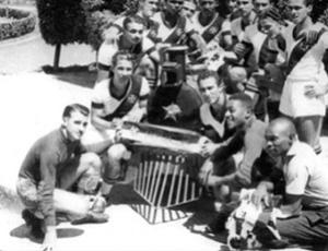 1957 - Adalberto, Thomé e Nílton Santos; Beto, Servílio e Pampolini; Garrincha, Didi, Paulinho Valentim, Édson e Quarentinha