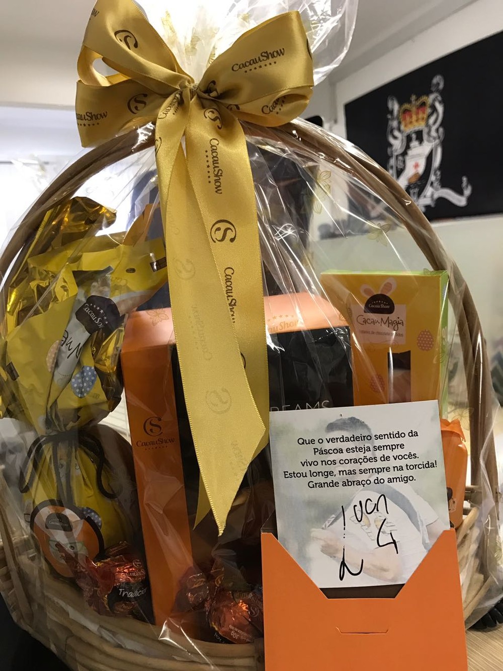 ![]() Cesta de chocolate entregue por Luan a funcionários do Vasco |