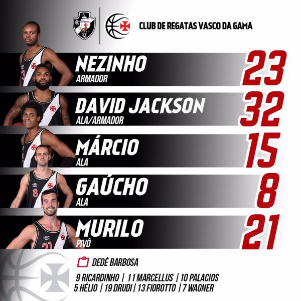 Basquete: Confira a escalação inicial do Vasco para o jogo contra o Pinheiros
