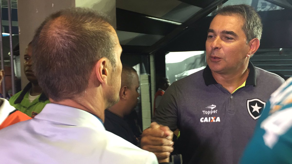 Raphael Zarko @raphazarko Milton Mendes aguarda na saída do túnel e cumprimenta comissão técnica do Botafogo #gevas