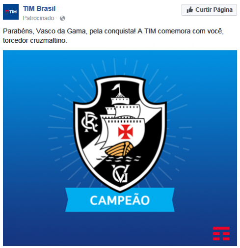 Patrocinadora do Vasco, TIM parabeniza clube por título