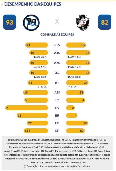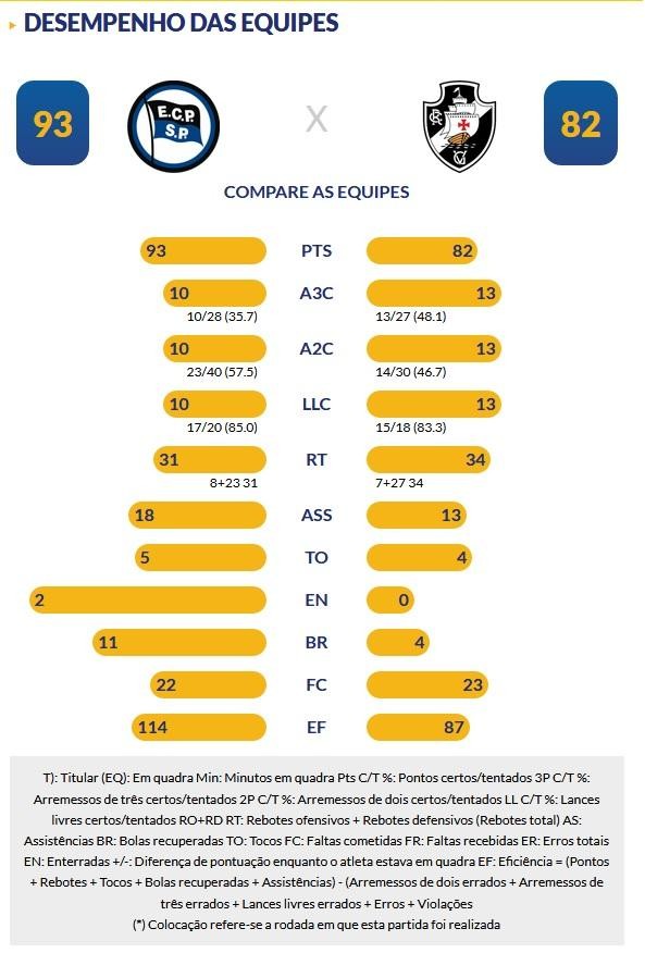 Basquete: Confira estatísticas de Pinheiros 93 x 82 Vasco