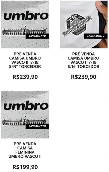 Loja do Vasco na internet inicia pré-venda das camisas 1 e 2 novas, edição 2017, feitas pela Umbro. Olhem aí os preços. Comprarão? #lanceVAS
