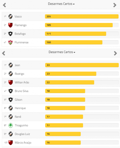 Vasco é o time com mais desarmes certos no Estadual; individualmente, Jean lidera e Rodrigo é o 2º